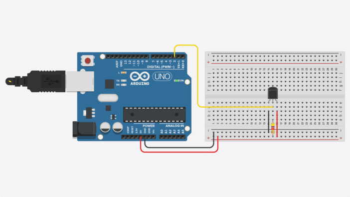 接下來,將中間引腳(DQ)連接到Arduino的任何數字引腳。在這種情況下,我使用了數字引腳2。您還必須在DQ引腳和5 V之間添加一個4.7kΩ的上拉電阻。這將使1-Wire總線的空閑狀態保持高電平。