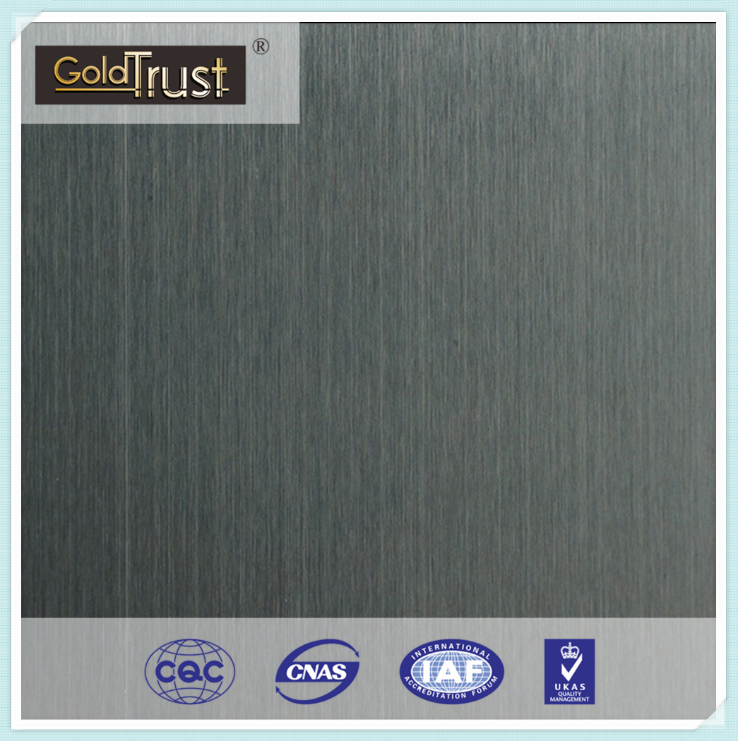 黑鈦不銹鋼板又名黑色不銹鋼板。它的表面有鏡面黑鈦板、黑鈦拉絲板等等。材質有201、304、316等,常規尺寸為1220mm*2400mm、1000mm*2000mm、860mm*610mm、1220mm*3050mm等等,厚度在0.28mm~5mm。黑鈦不銹鋼板可真空鍍可水鍍,水鍍顏色比真空鍍顏色更鮮艷,缺點是304材質鍍出來偏藍。