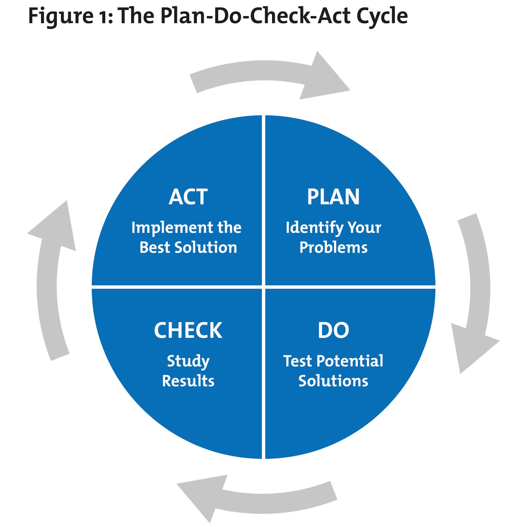 該方法從規(guī)劃階段開始,在該階段清楚地識(shí)別和理解問題,并定義改進(jìn)理論。在 Do 階段小規(guī)模測(cè)試潛在的解決方案,然后研究和檢查結(jié)果。