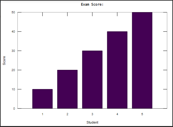 讓我們有一個有10名學(xué)生的奇特的學(xué)習(xí)大廳。我們知道這些學(xué)生獲得的分?jǐn)?shù)百分比分別為10分、20分、30分、40分和50分。我們將繪制此信息的條形圖。