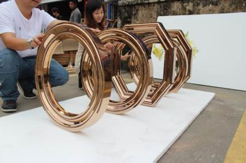 高檔的酒店現在都流行用不銹鋼的產品進行點綴和裝飾,比如說不銹鋼屏風,不銹鋼畫框等等。這些產品更難體現奢華的現代和歐式裝飾風格。KTV或者星級酒店里面使用的不銹鋼產品就更多了。比如不銹鋼茶幾,不銹鋼包邊等等。不銹鋼經過鍍鈦之后它的表面可以呈現鈦金,玫瑰金,黑色等顏色,色彩光耀奪目,煞是好看。它的制作流程一般是: