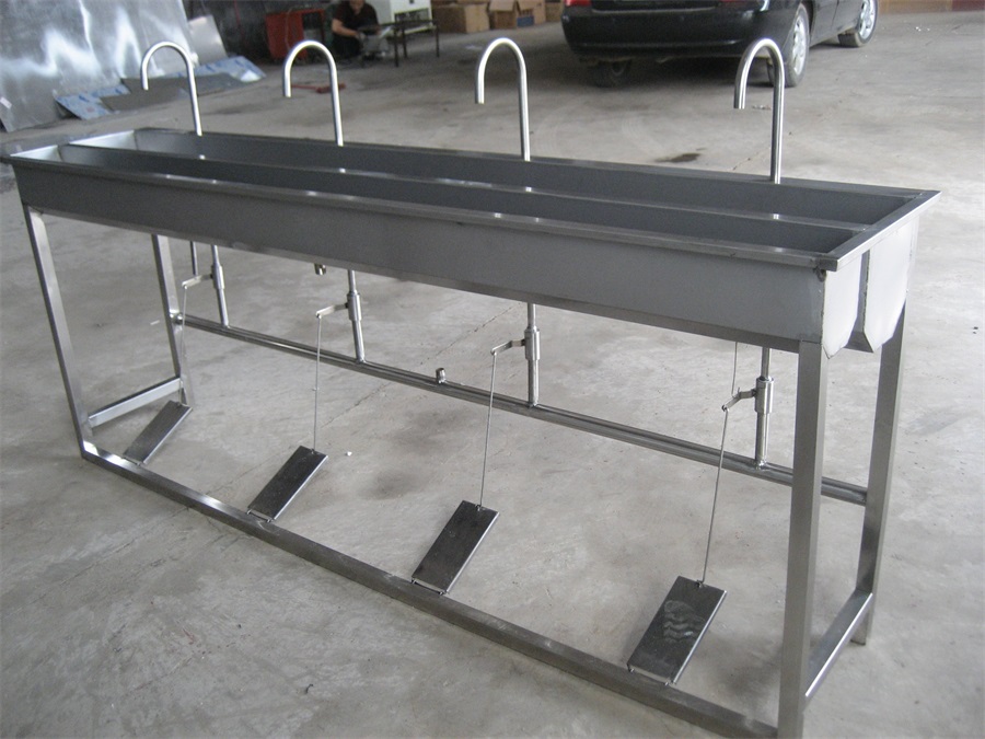 不銹鋼消毒洗手池是用于食品廠工作員工進(jìn)入車間前的洗手消毒的,采用腳踏式無須手部接觸直接出水方式,防止二次污染,符合食品廠SC認(rèn)證需求。不銹鋼消毒洗手池可來圖定做,也可根據(jù)需求由我司出圖,尺寸、樣式、功能可根據(jù)要求定做。
