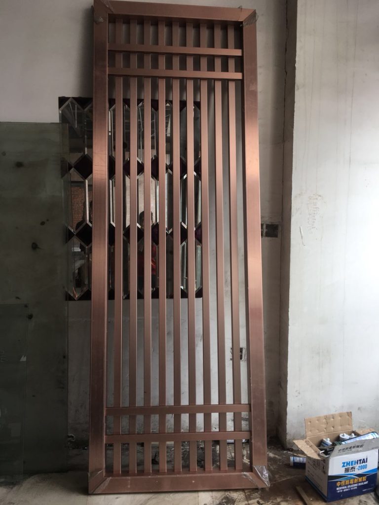 2、古銅色,玫瑰金,黑鈦金不銹鋼屏風(fēng)表面處理:板材表面處理也分為鏡面和拉沙兩種,家裝一般不建議用鏡面不銹鋼,拉沙的效果好一些。