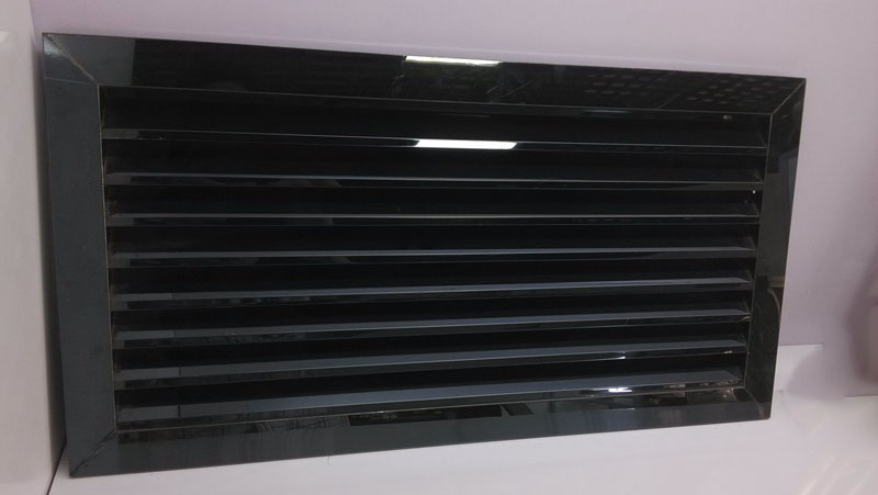 這款出風(fēng)口采用不銹鋼板經(jīng)過剪板折彎加工而成,加工好之后再拿去鍍鈦,就可以加工成圖片上這種黑色鏡面的效果了。
