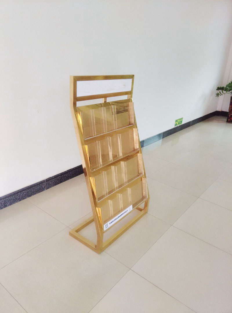 一般的不銹鋼展示架都是銀色的,很普通,但是這款由北京金利恒旺公司加工的不銹鋼展示架卻是金色的,顯得很獨(dú)一無(wú)二,高端大氣上檔次。它和普通的展示架制作工藝都差不多,都是先用不銹鋼管切割焊接而成,再經(jīng)過車間師傅的精心打磨拋光,最后的一個(gè)步驟就是鍍鈦工藝,也就是上色的過程。就是把這個(gè)展架放進(jìn)鍍鈦爐里面去進(jìn)行鍍鈦金的一個(gè)過程。