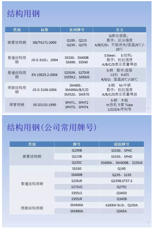 注:A、B、C、C、E等級間的區(qū)別主要表現(xiàn)在:①含碳量范圍;②磷硫及殘余元素的含量;③鋼的純凈度;④機械性能及工藝性能的保證。由于D級質(zhì)量鋼均為特殊鎮(zhèn)靜鋼,故“TZ”符號可以省略。如Q235DTZ可寫為Q235D。符號“Z”有時亦可省略。