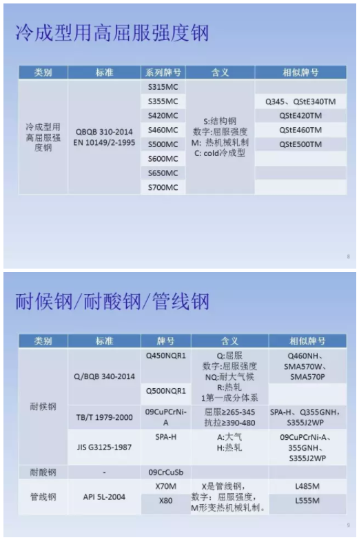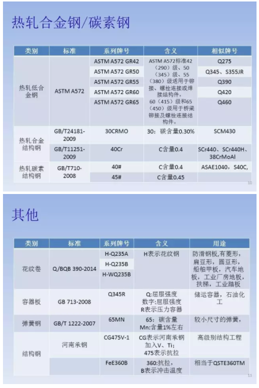 客觀地說,GB/T 221使用更為廣泛。標準里規(guī)定,我國鋼鐵產(chǎn)品牌號采用大寫漢語拼音字母、化學元素符號和阿拉伯數(shù)字相結(jié)合的方法來表示。為了便于國際交流和貿(mào)易的需要,作為漢語拼音字母的補充,也采用大寫英文字母或國際慣例表示符號。