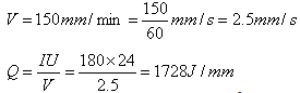 電流180A,電弧電壓24V,焊接速度150mm/min。試計算其線能