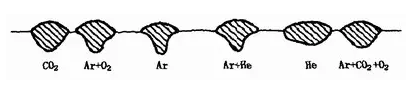 圖1—35??保護氣體成分對焊縫形狀的影響