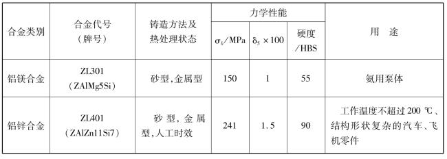 表1.5.12 幾種常用鑄造鋁合金的牌號、力學性能及用途