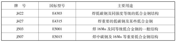 表4.1.4為部分結構鋼焊條牌號與新國標規定的對照及主要用途。